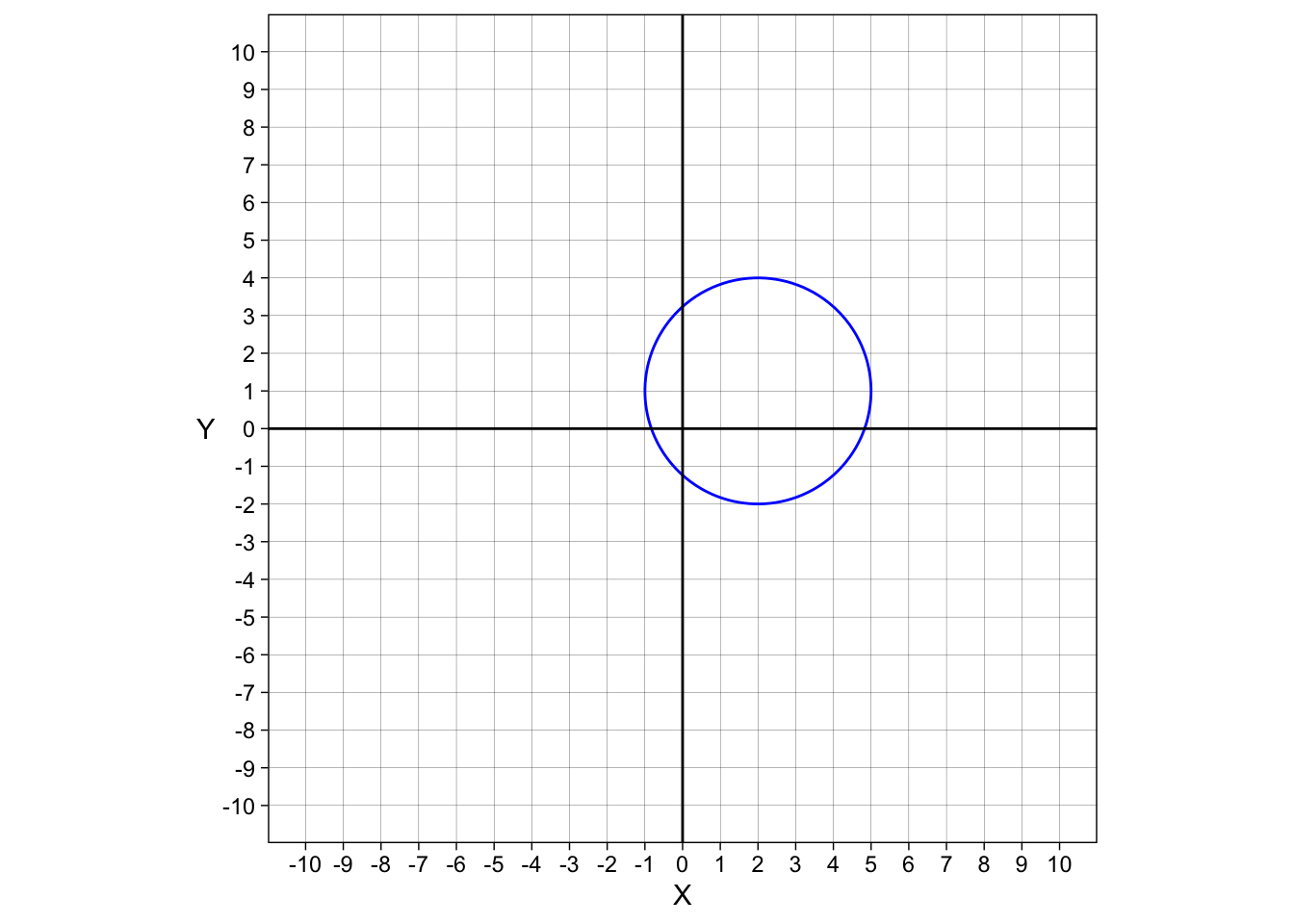 \[x^2 + y^2 = r^2\] But that is only centered around \(0, 0\). To make a circle centered…not…there, we need to use a slightly different equation.