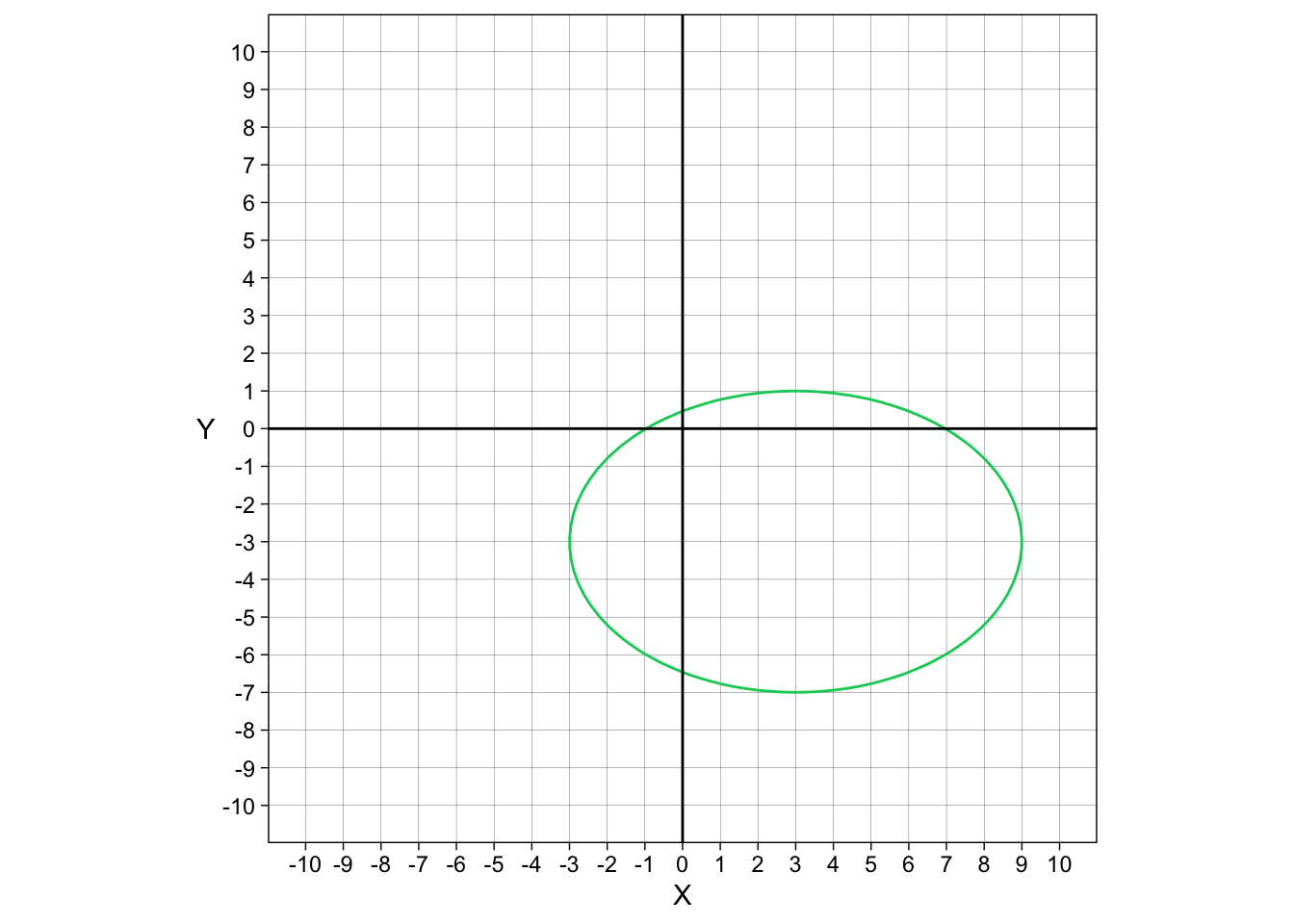 \[\frac{(x-3)^{2}}{8^{2}}+\frac{(y+3)^{2}}{4^{2}} = 1\]