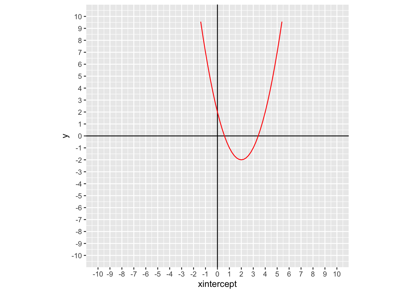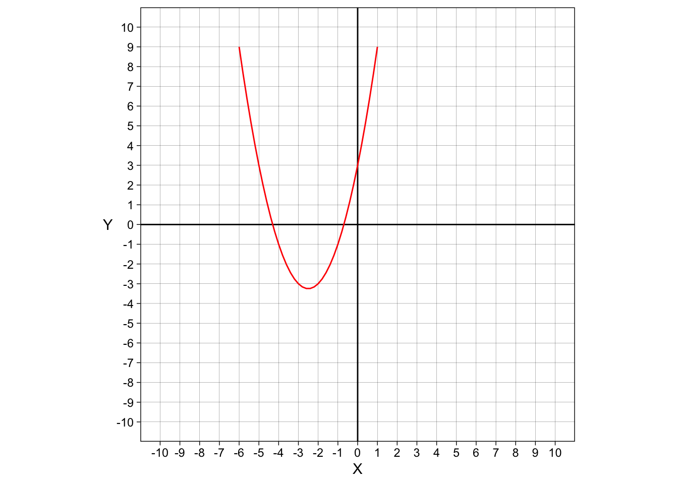 This will be very easy to plot. When making this a function, we can’t include the \(y\), and will just set the function equal to \(ax^2+bx+c\) for some \(a\), \(b\), and \(c\).